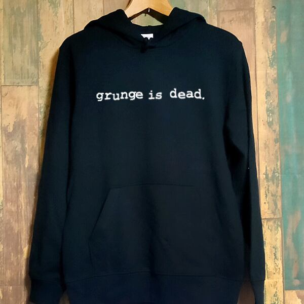 カート コバーンがTシャツで着ていたgrunge is deadを、パーカーに落とし込んだ、メッセージな1枚です。