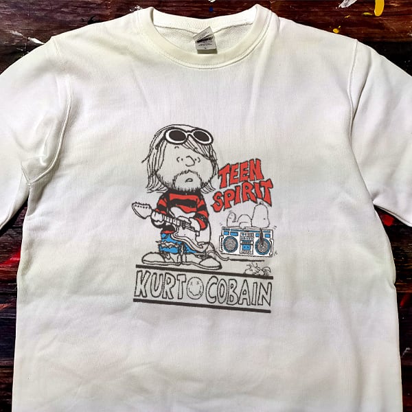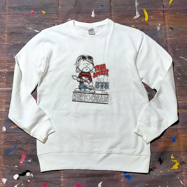 スヌーピー&カートコバーン TEEN SPIRIT 白色 トレーナー 選べる3サイズ M,L,XL 送料無料